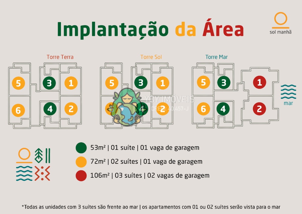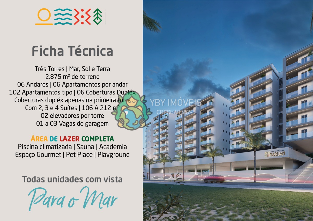 Serão três torres independentes ,Mar, Sol e Terra, em um terreno de 2.875 m², com arquitetura moderna, plantas inteligentes e excelente aproveitamento de iluminação e ventilação natural.
