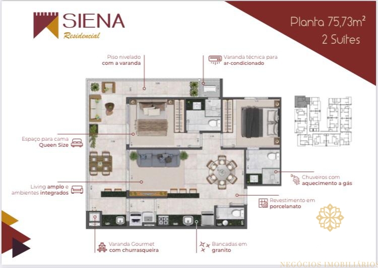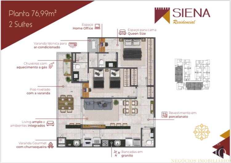 • Sala de Estar • Sala de Jantar • Escritório • Lavabo • Varanda Gourmet • Elevador • Sauna • Garagem Coberta • Terreno Próximo a Praia