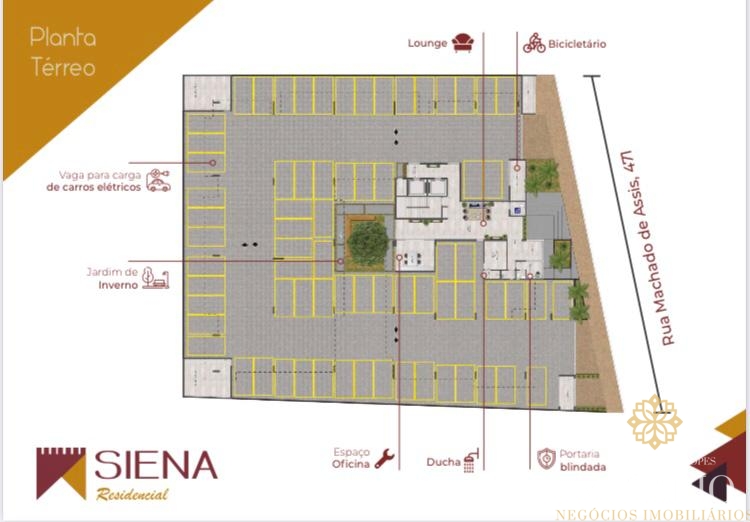 Na área comum, living room, play, vaga para carga de carros elétricos, espaço para oficina e bicicletário, armário náutico.