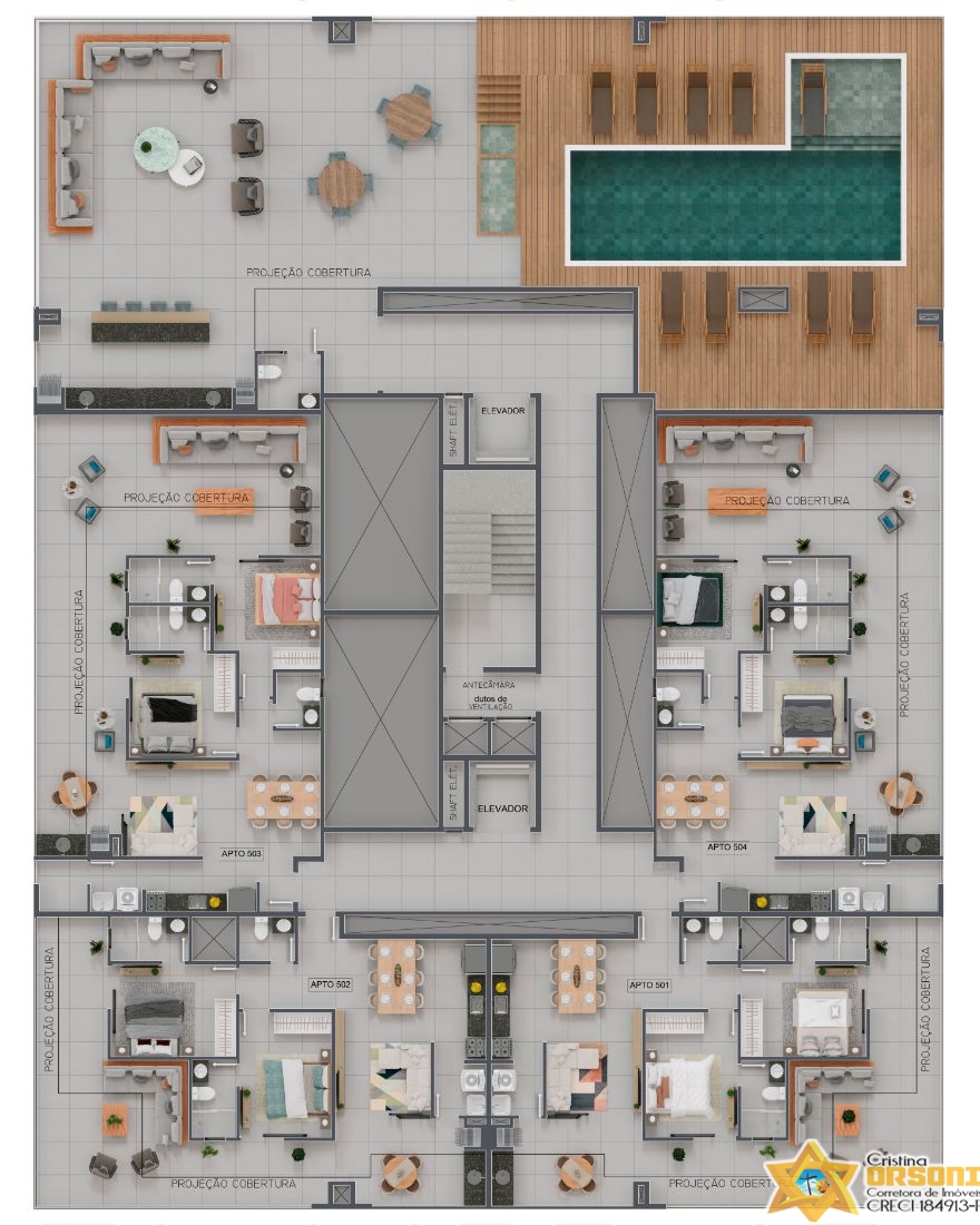 Lazer no térreo: Academia, Dog Wash, Salão de Jogos, Brinquedoteca, Salão de Festas, Coworking e Beauty Care.