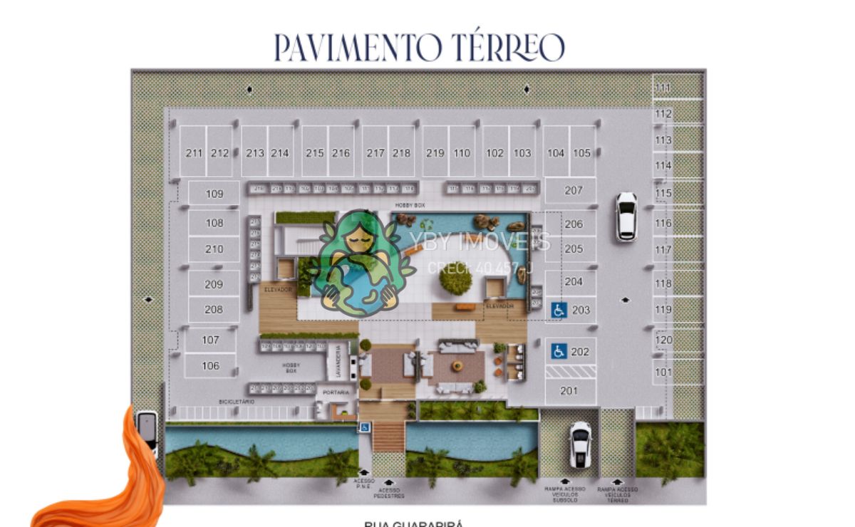 O térreo oferece ainda guarita com banheiro, recepção para hóspedes, área gourmet com balcão e máquina de bebidas, lavanderia, depósito para entregas e acessibilidade total (PNE).