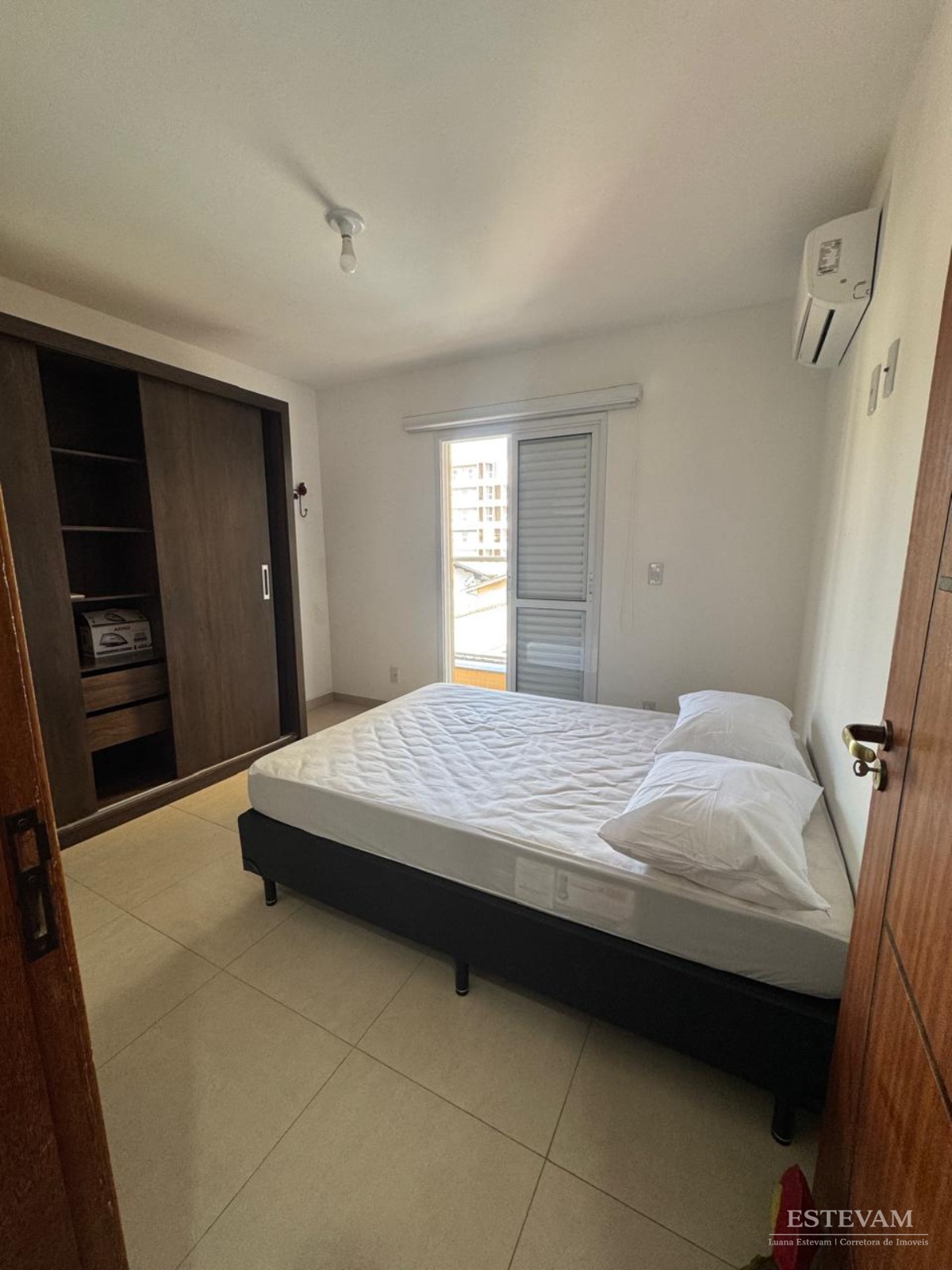 O apartamento é mobiliado e conta com armários embutidos, proporcionando organização e aproveitamento de espaço.