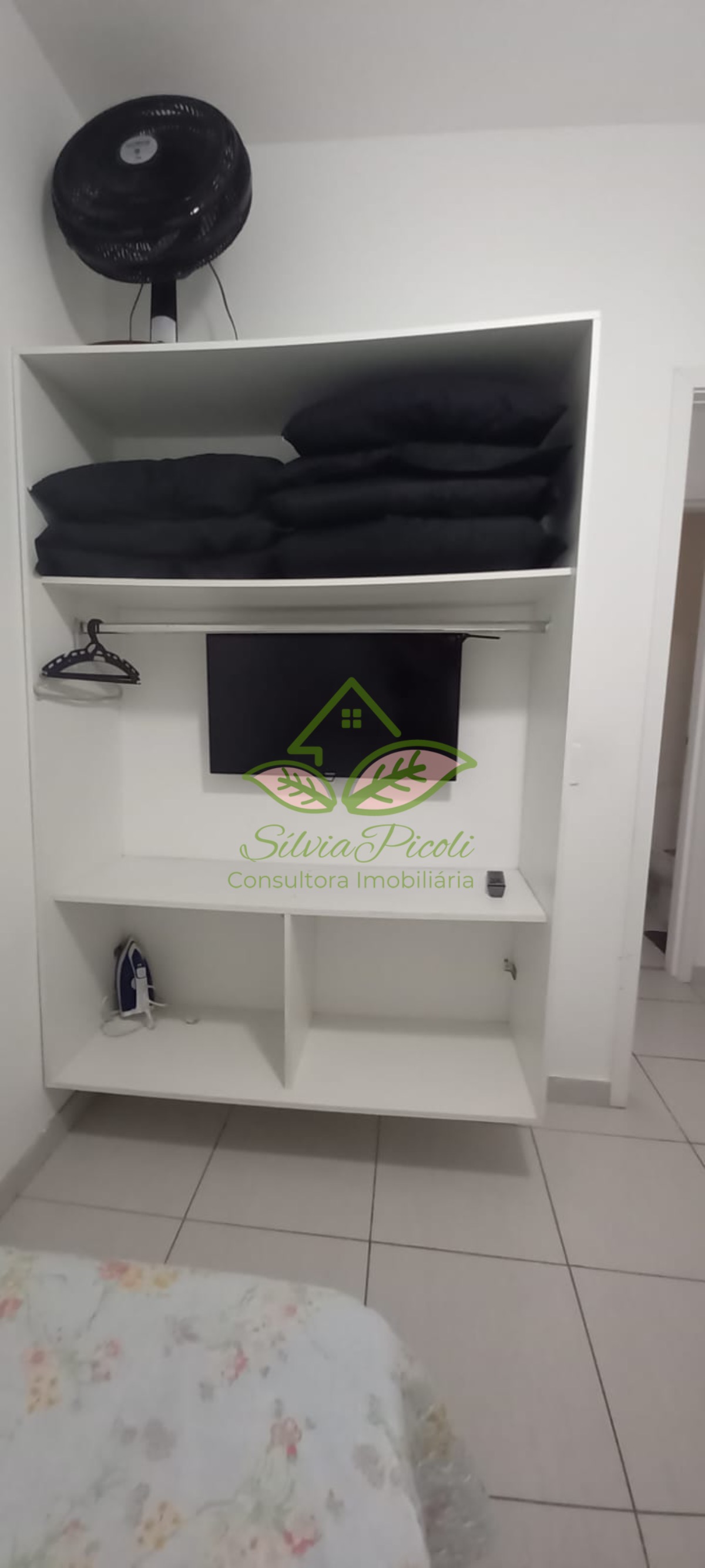 O imóvel é mobiliado e ainda dispõe de ventilador, sacada e garagem coberta, além de um armário náutico para maior praticidade.